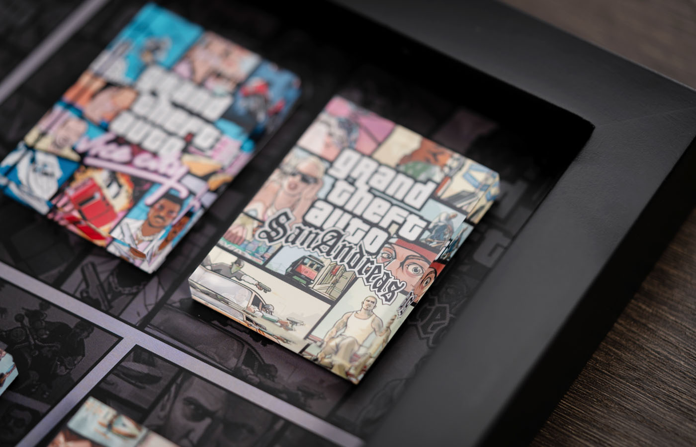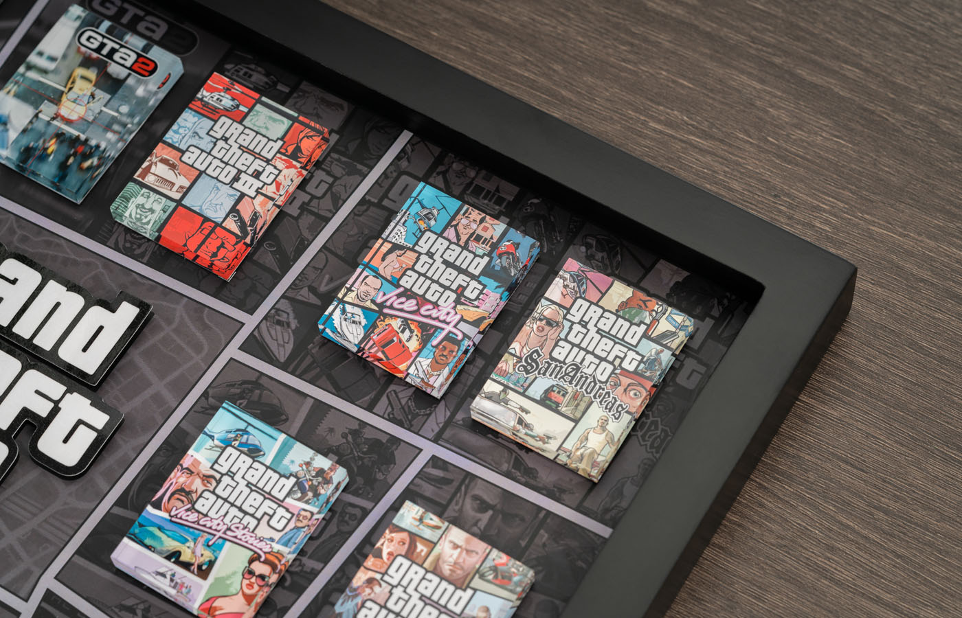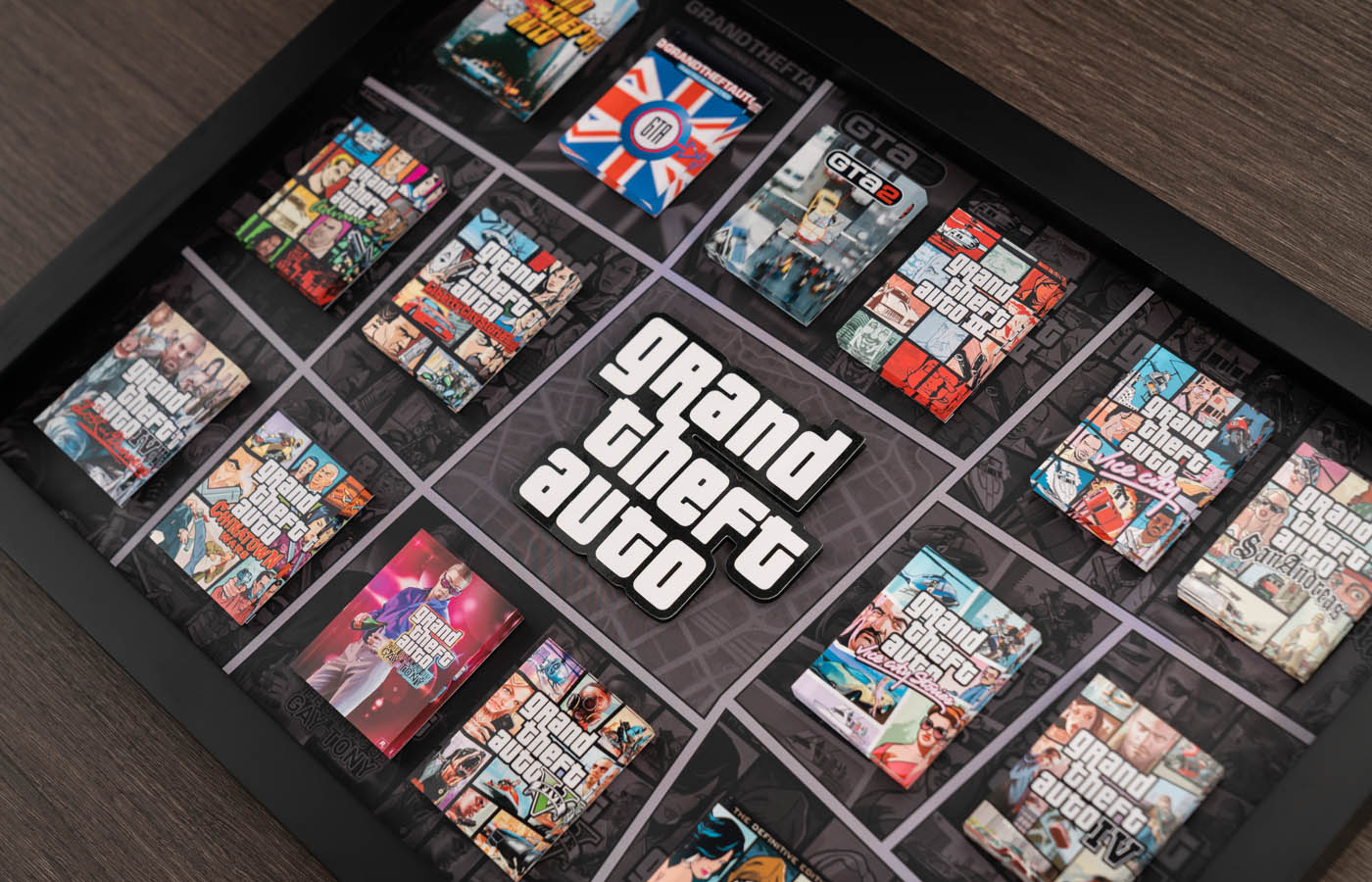 Relive the classics, collect the legends—this frame brings together the covers of all GTA games, capturing every adventure within. Whether you're a new player or a longtime fan, this is a rare collectible you won’t want to miss."